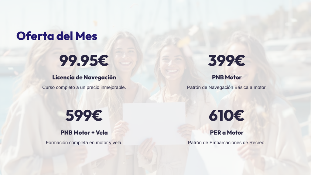 Licencia de navegación en Alicante: «Consigue tu licencia de navegación en Alicante con un curso intensivo que incluye teoría y práctica. Te acompañamos en todo el proceso, desde la inscripción hasta el examen final, para que puedas disfrutar del mar Mediterráneo en poco tiempo.»